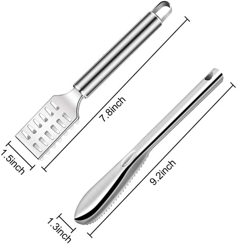 Täydellinen ruostumattomasta teräksestä valmistettu mittakaavin kaavin voidaan jakaa käytännöllisenä lahjana perheen ja ystävien kanssa, jotta voit käsitellä kalan suomut helposti ja iloisesti; Mukava asetus sopii myös ravintoloihin, merenelävämarkkinoille ja kalanjalostusteollisuuteen jne.